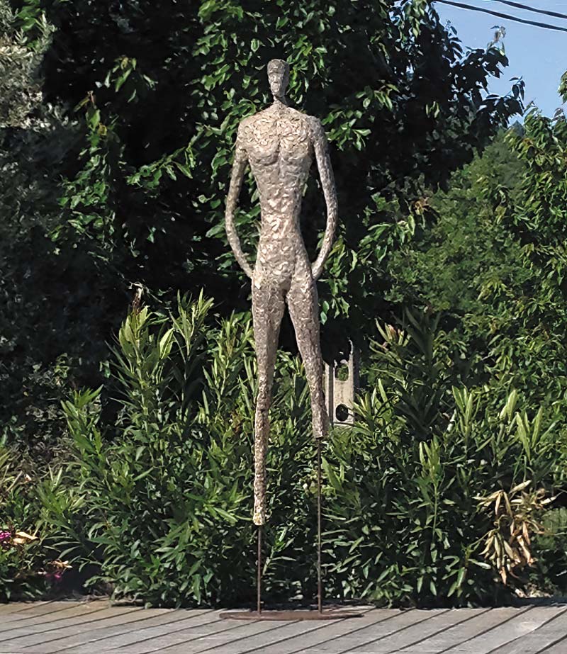 Individual characters rarely stand in isolation: couples and families are her main themes, which she translates into a contemporary aesthetic, as well as the search for happiness, beauty, harmony, and consent. To achieve this, she uses a mixed technique that combines the noble qualities of bronze with those of iron and resin.