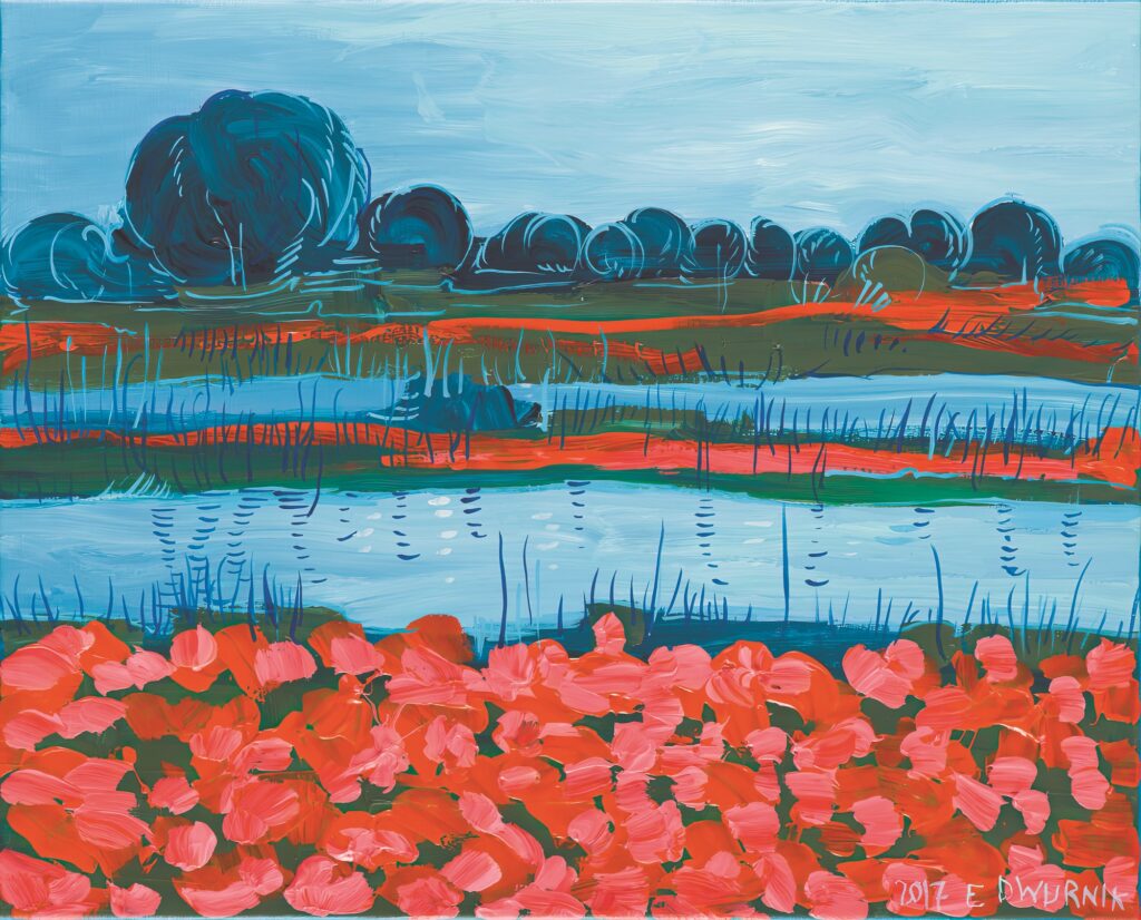 Edward Dwurnik was an exceptionally prolific artist. His oeuvre includes over 8,000 canvas paintings, including extensive painting cycles, as well as more than 20,000 works on paper. The first works in his monumental series Hitchhikers Through the Skies, depicting cities from a bird’s eye view, date from 1966 and continued until his death in 2018.