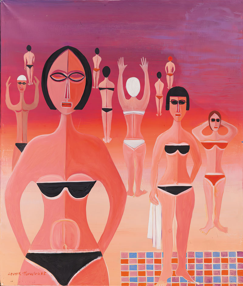 His works are known for their vibrant coloration. Noteworthy are his hand-crafted three-dimensional figures, which are unique in their form. Works by Leszek Nowosielski can be found in the collections of the National Museums in Warsaw, Wrocław, and Gdańsk, as well as in the Mazovian Museum in Płock and the Archaeological Museum in Warsaw.